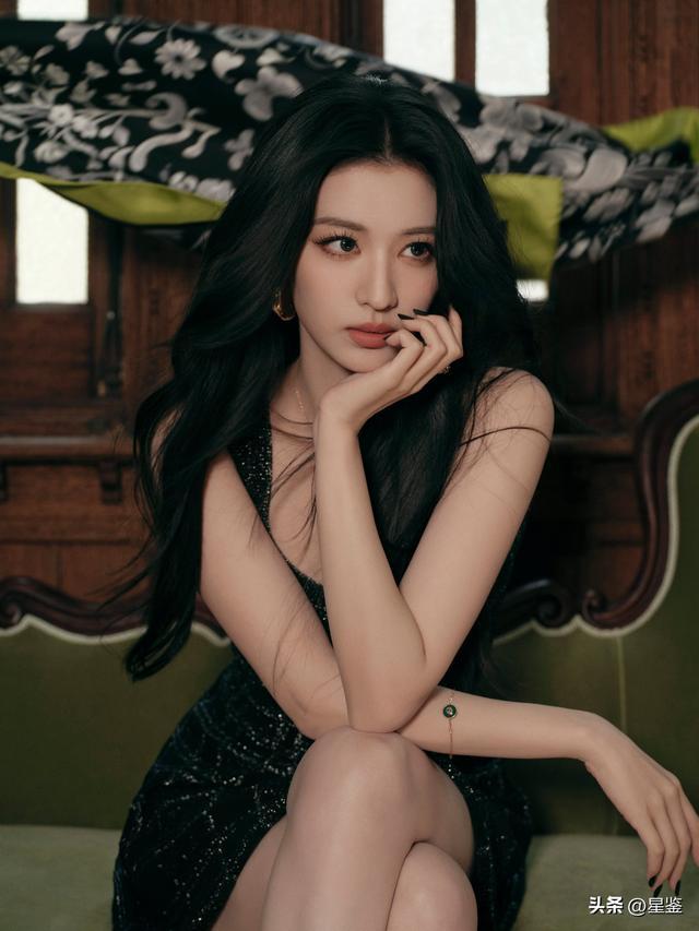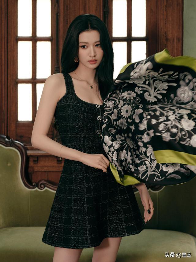 一身黑色格纹无袖短款连衣裙,简直是为她量身定做的神级单品。U型领刚好露出精致的锁骨,收腰设计把腰臀比衬得绝了,短款裙摆又秀出了笔直修长的双腿,把身材优势发挥到极致。裙身的细闪格纹低调又有质感,在光线下自带高级光泽,完全不会浮夸,反而把那种松弛的贵气感拿捏得死死的。